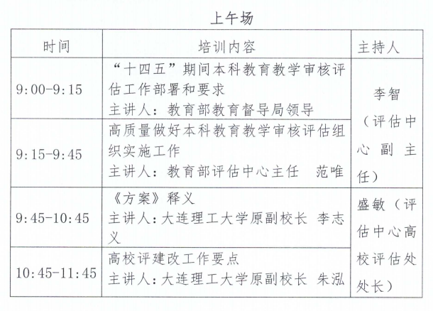 普通高等學校本科教育教學審核評估參評高校培訓議程